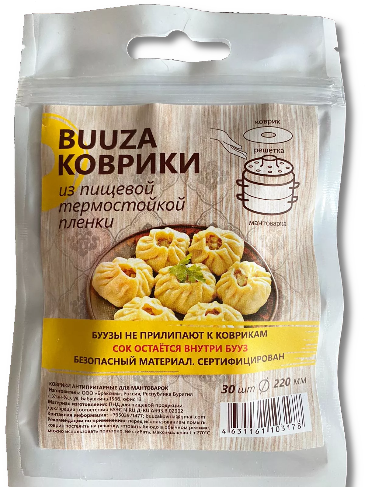 Буузы будут упакованны в фольгу и лёгкий термоконтейнер для сохранения температуры.